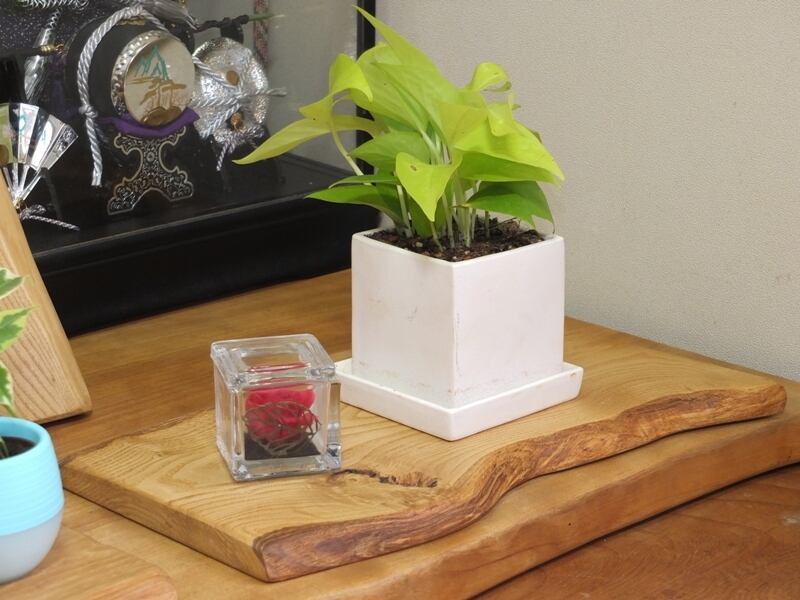 普段何気なく飾っていた、花器や一輪挿しの花も風合いのある天然木花台・飾り台を台座としてお使い頂けば、見慣れた一輪挿しも華やかに!